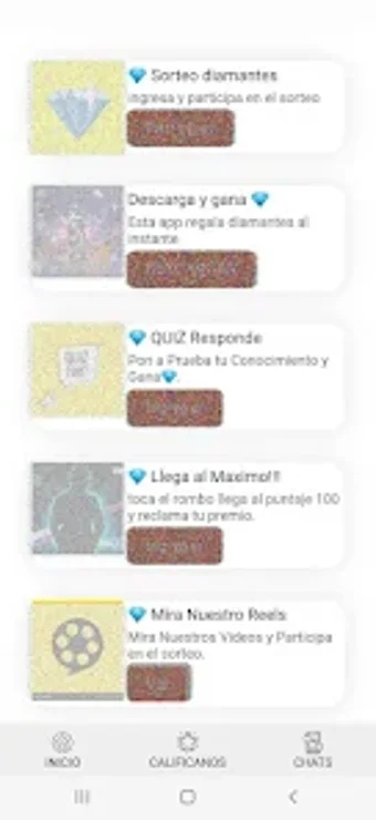 该应用鼓励用户在赚取奖励的同时享受乐趣,提供了一种简单而互动的方式来获取游戏内货币。凭借其用户友好的界面,GANA DIAMANTES FFIRE CON ID 旨在为用户提供一种愉快的方式来参与 Fire 社区,同时奖励用户的参与和游戏成就。